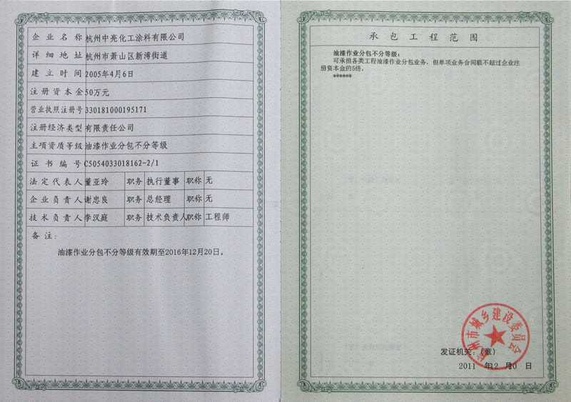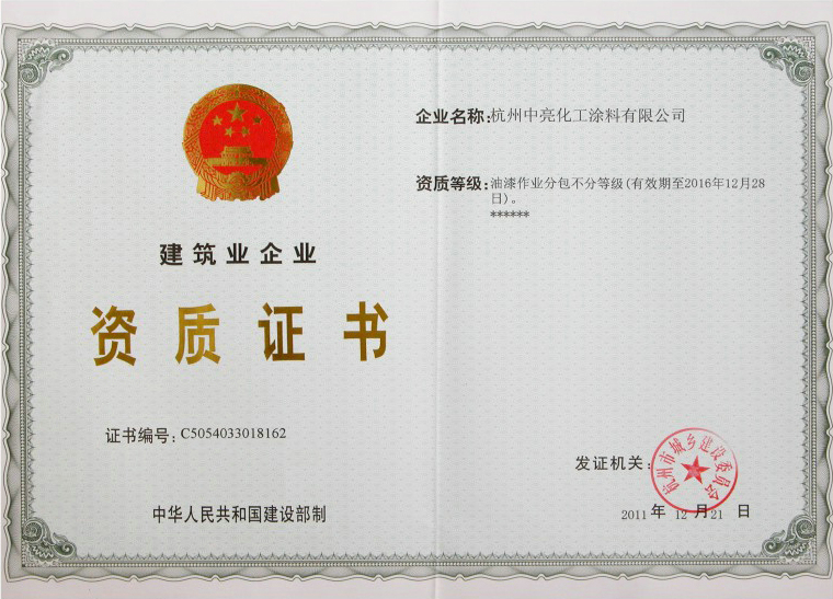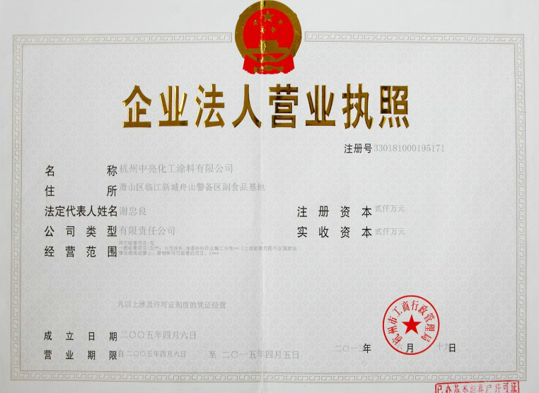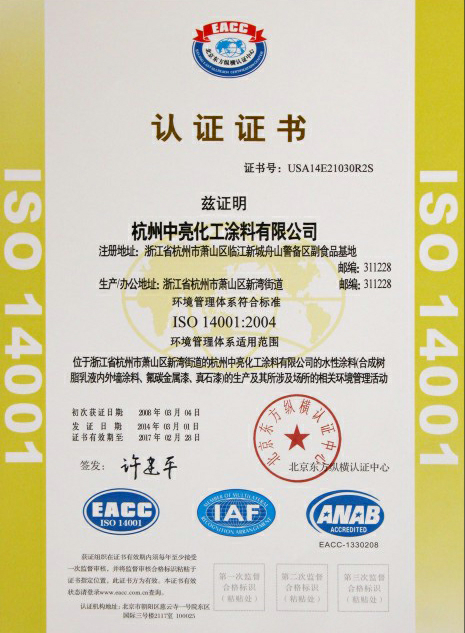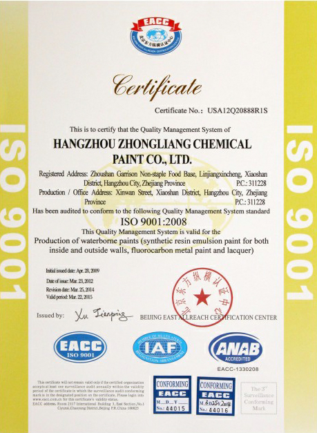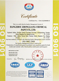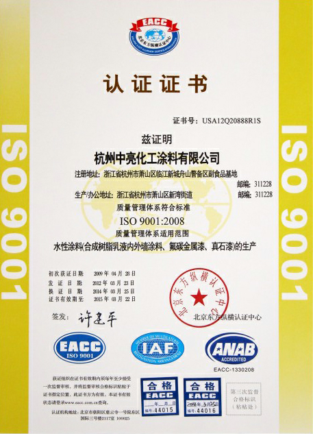 公司始終貫徹"質(zhì)量為重、用心服務(wù)、開(kāi)拓創(chuàng)新、顧客滿意"的質(zhì)量方針。在"保質(zhì)量、重信譽(yù)、講效益、求發(fā)展"經(jīng)營(yíng)完旨的指引下,杭州中亮化工涂料有限公司誠(chéng)邀您共同發(fā)展,攜手共進(jìn),以豐碩成果和深厚情誼迎接美好的明天!