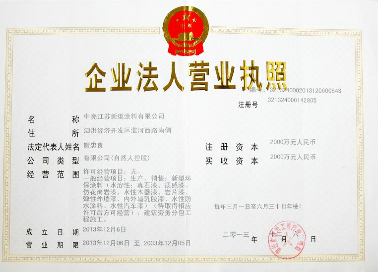 杭州中亮化工涂料有限公司(中亮江蘇新型涂料有限公司)地處于杭州市蕭山區(qū)臨江新城,廠房占地面積18000m2,擁有三個(gè)標(biāo)準(zhǔn)化專用車間,檢測(cè)生產(chǎn)設(shè)備先進(jìn)齊全。同時(shí),經(jīng)過(guò)兩年多的籌備和建設(shè),占地五十六畝的中亮江蘇新型涂料有限公司已于2014年春建成投產(chǎn)。這是中亮涂料發(fā)展的重要里程碑!標(biāo)志著中亮涂料進(jìn)入新的發(fā)展階段。